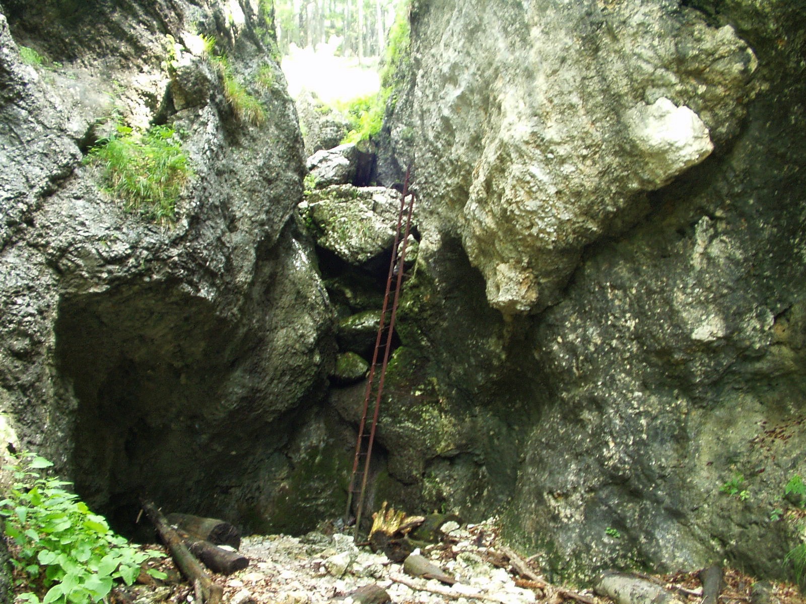 Po dvou hodinách klidné chůze jsem dorazil ke Kienthaler Hütte a pak jsem musel chtě nechtě sestoupit až úplně na dno údolí, které se v pouhých 500 metrech nad mořem zařezává mezi dvoutisícové masivy Schneebergu a Raxalpe. Cesta vedla příkrým a divokým kaňonem, místy po řetězech a žebřících – právě tady jsem musel svoje trekové hole schovat, abych mohl využít všechny technické pomůcky. Cestou dolů jsem se zapotil víc než při výstupu na vrcholy. Navíc se postupně zlepšilo počasí, takže když jsem kolem poledne došel až na dno údolí s vlídnou a docela levnou chatou a restaurací Weichtal Hütte, mohl jsem se dokonce převléct a propocená trička usušit na pálícím slunci.